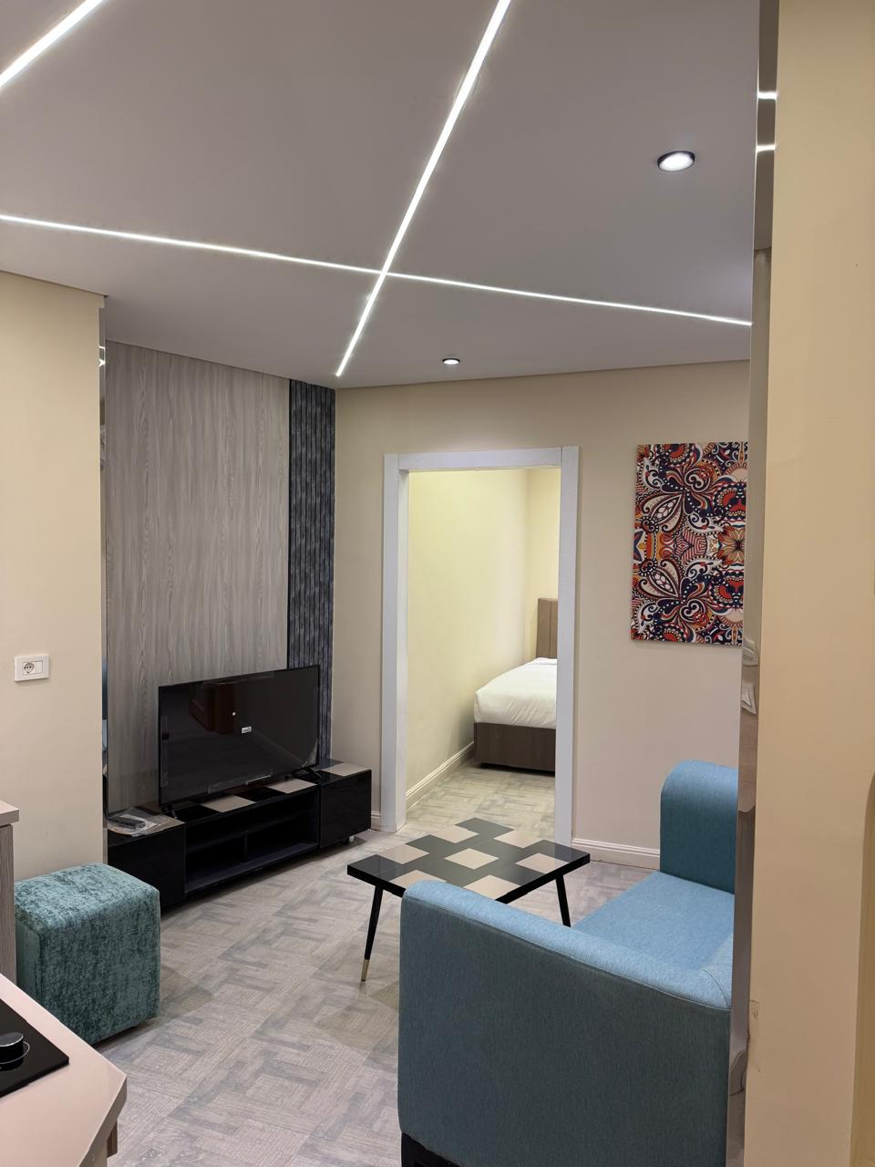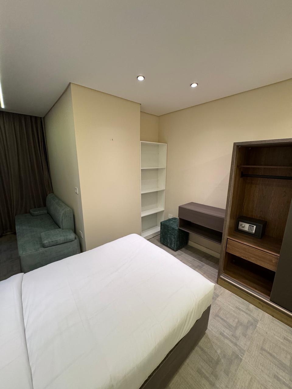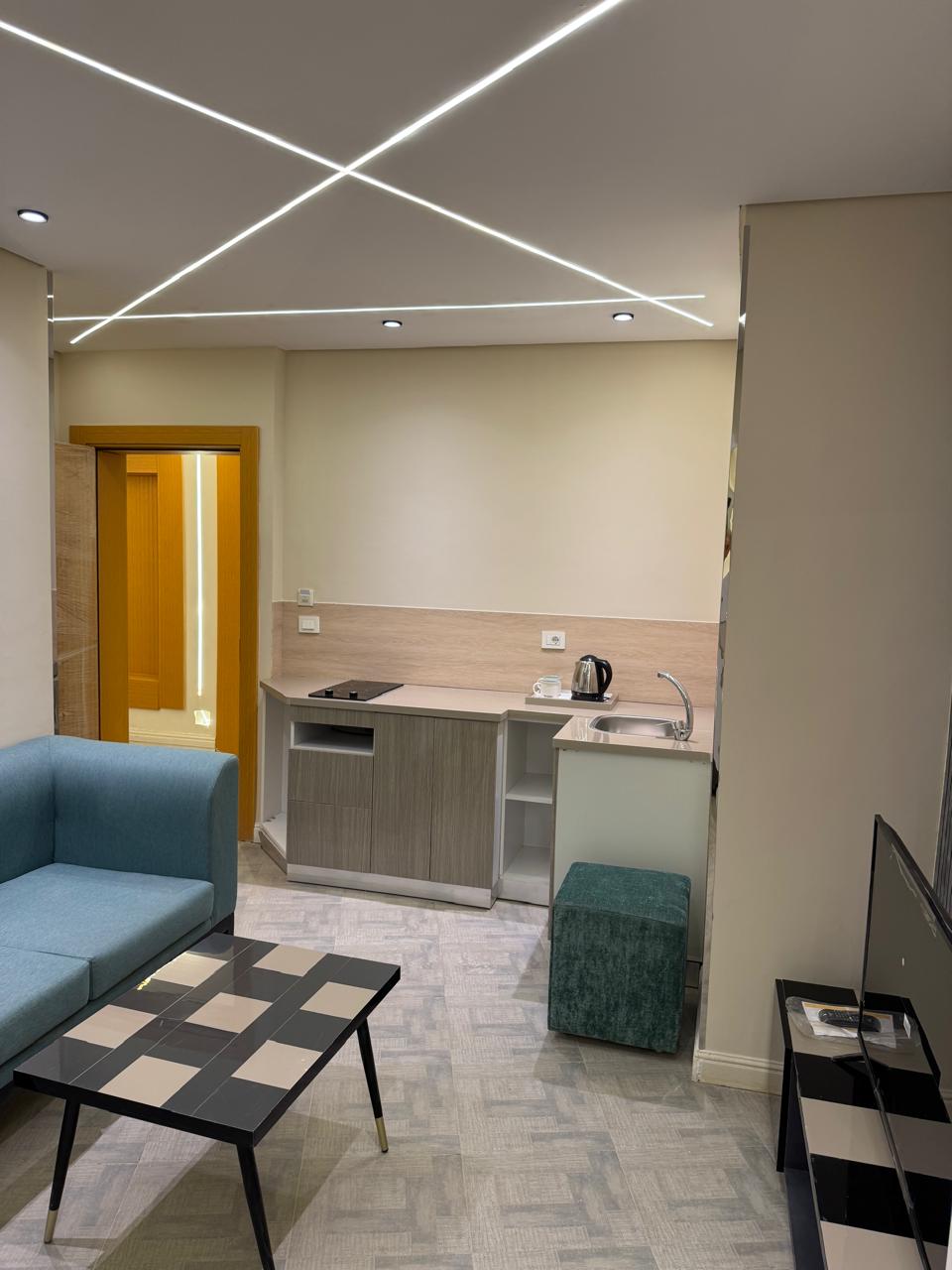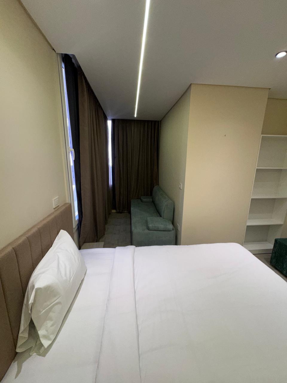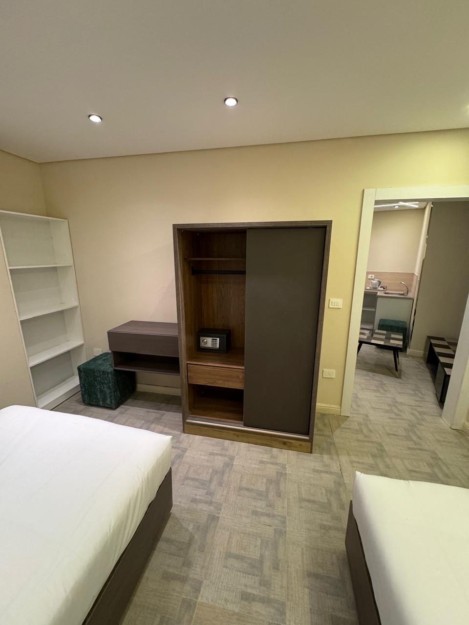 hotel apartment with an area of 52 square meters with Side Seaview in the fifth floor of the Cavalli apartment building All designs are modern and will surely impress you. The apartment has a bathroom and toilet with a shower cabin A small kitchen equipped with all your needs King-size bed (160 cm) or two single beds (120 cm), sofa, coffee table, wardrobe, safe , 43-inch smart TV, minibar, instant water heater, air conditioning