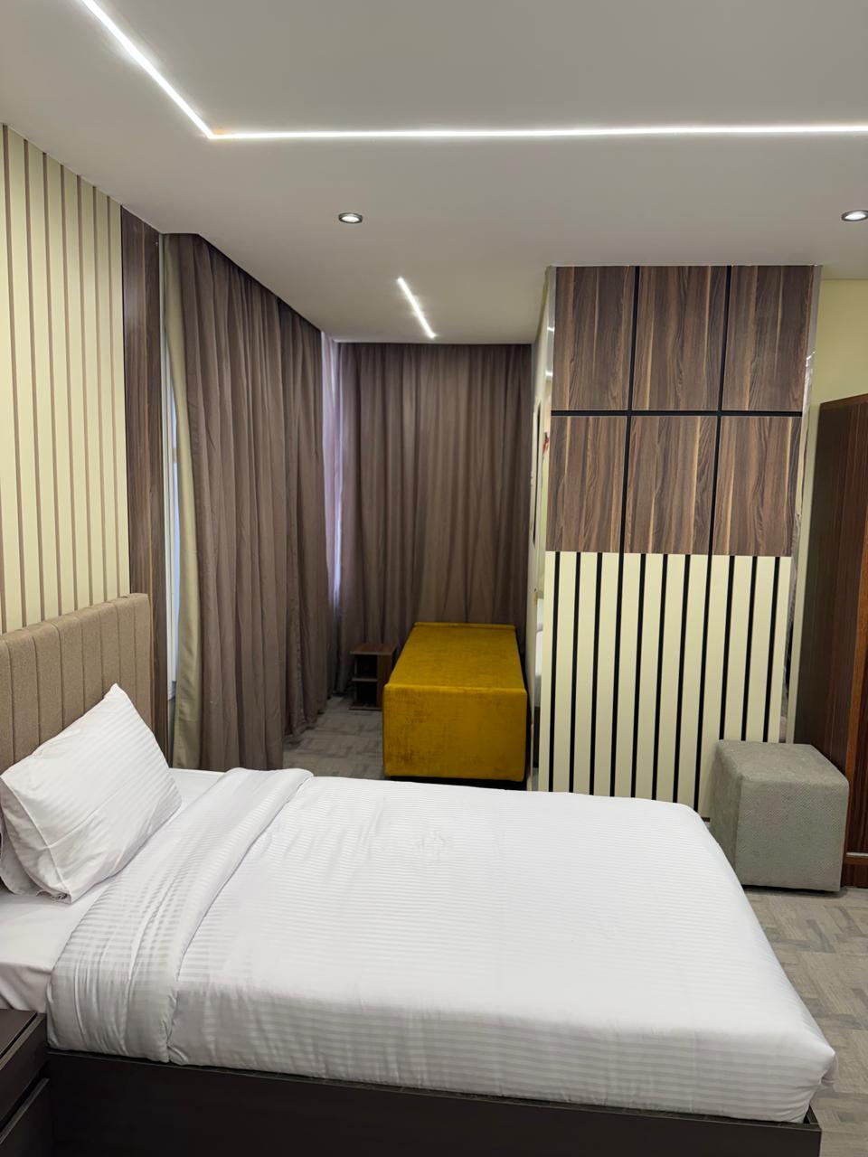 A king-size bed (180 cm) or two single beds (120cm) , a sofa, a wardrobe, safe, coffee table, 43-inch smart TV, a minibar, an instant water heater, and air conditioning